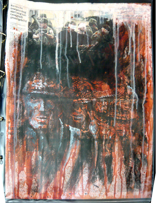 Painted on newspaper using Oil, Conte Crayon and Charcoal.